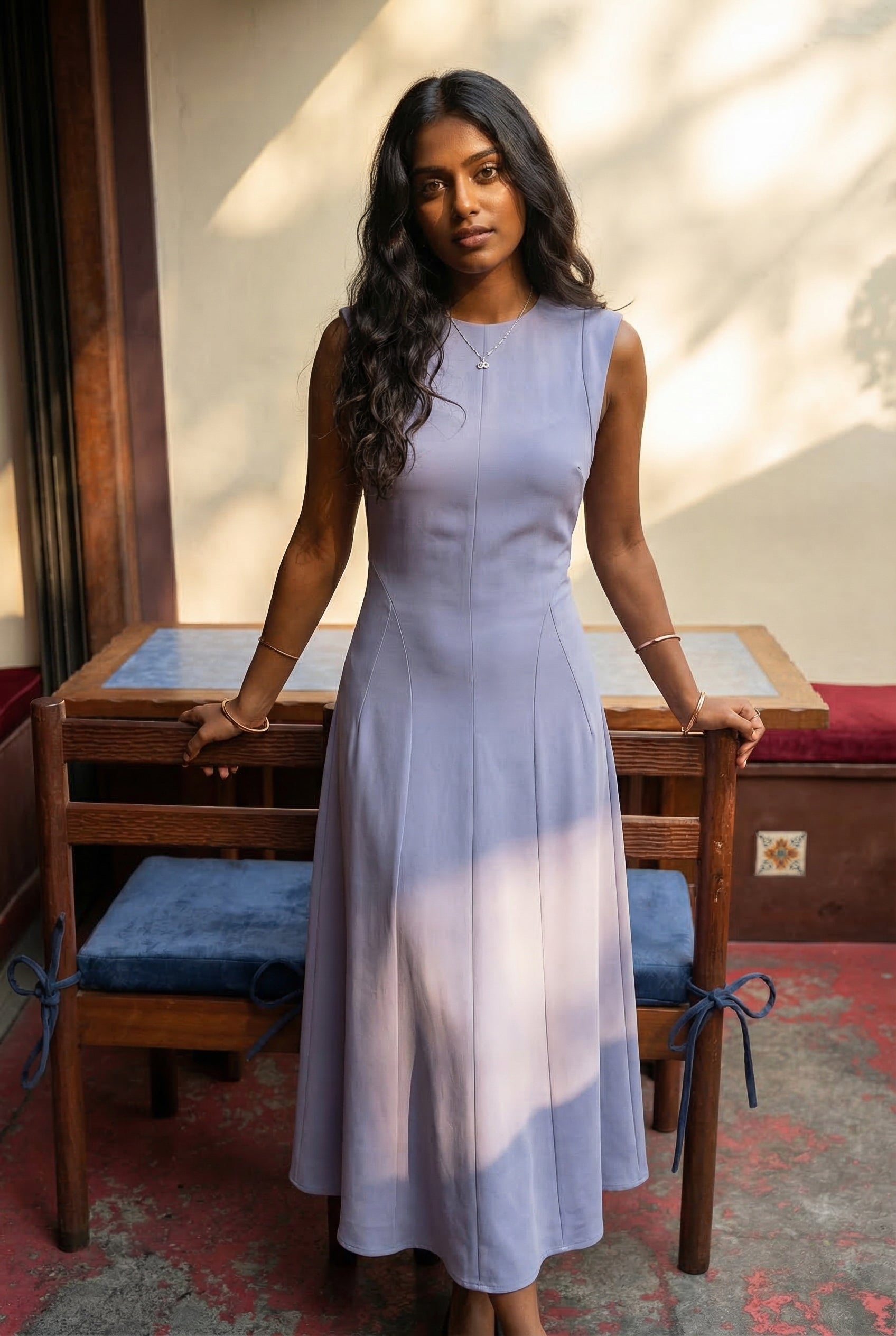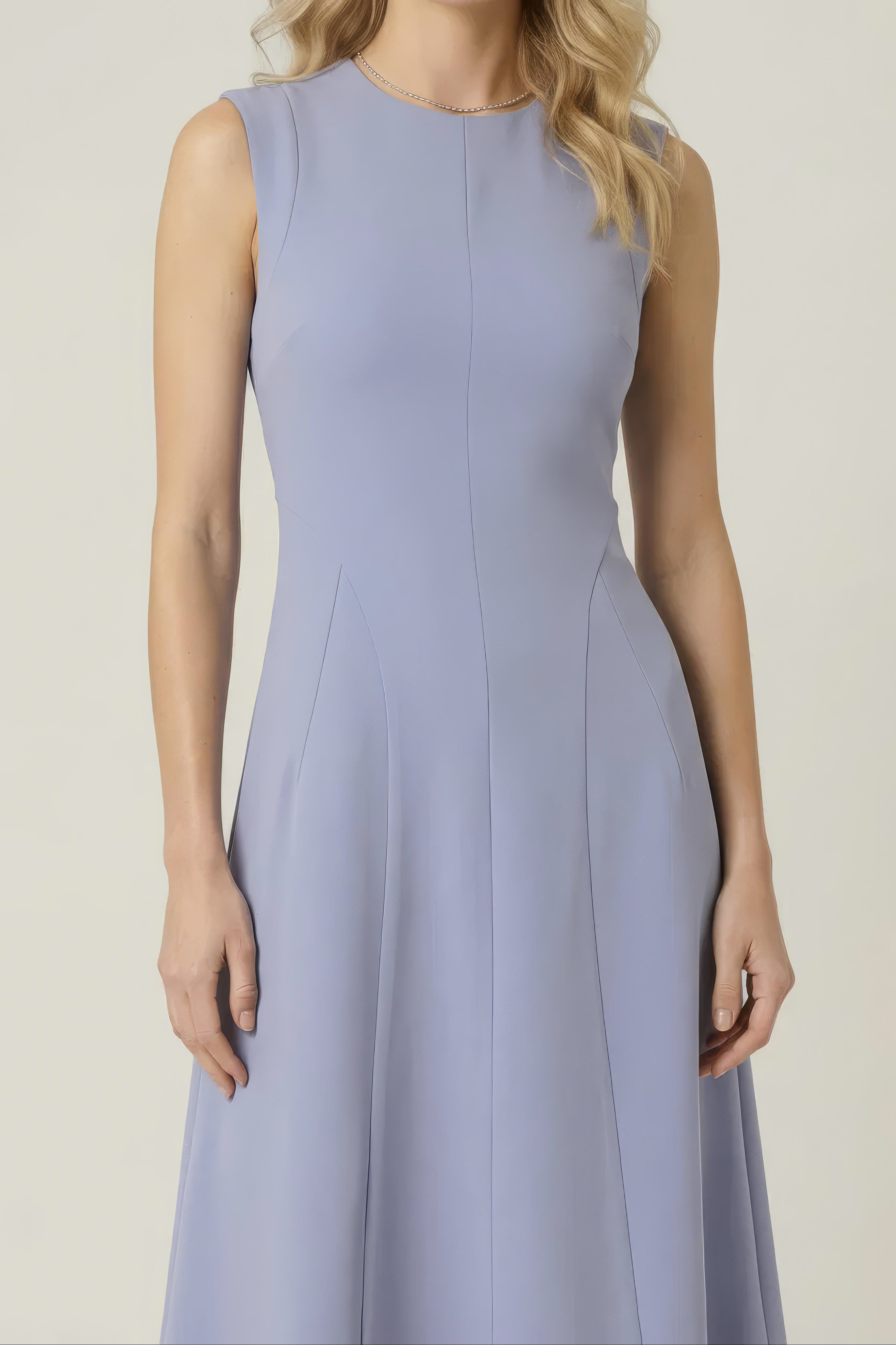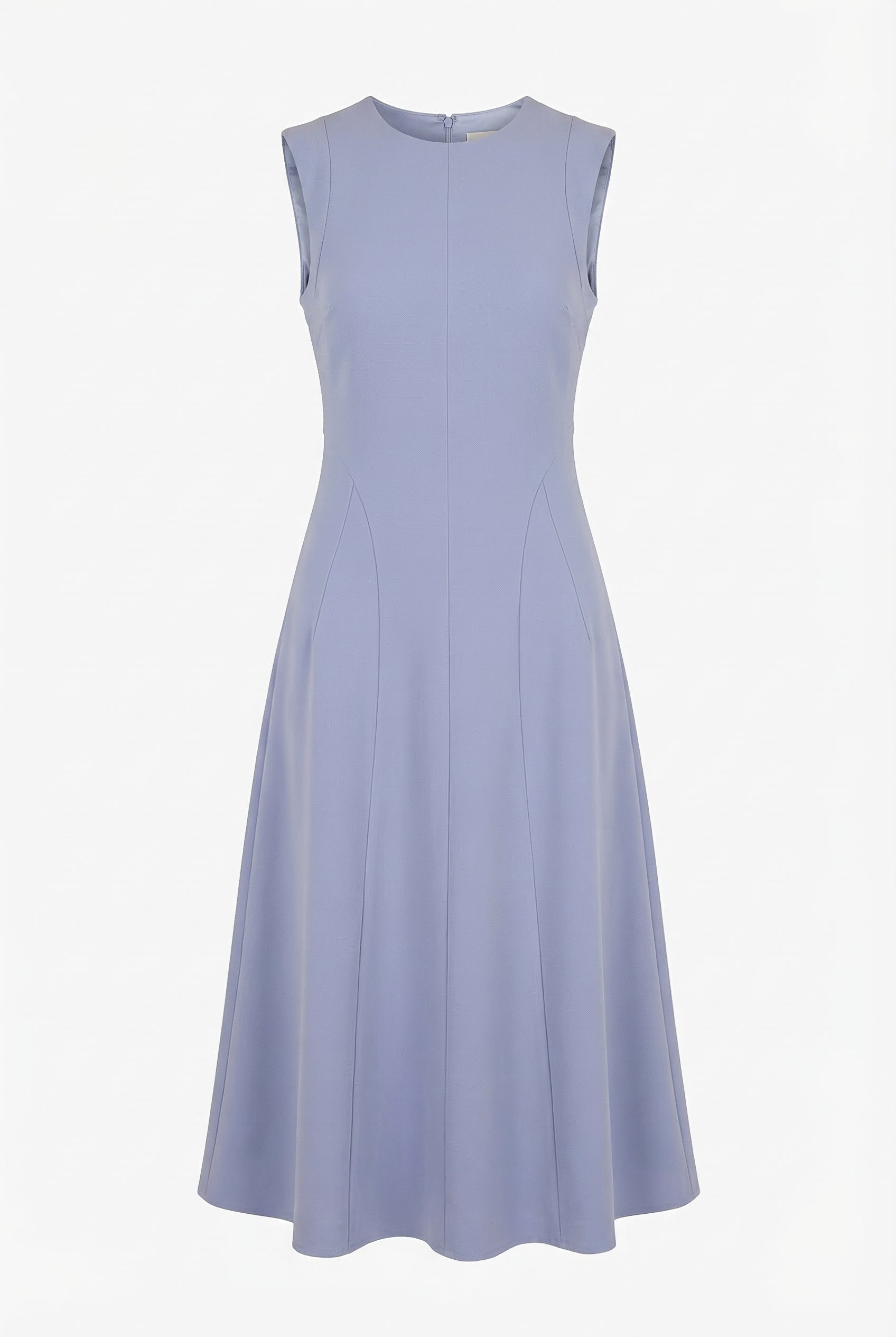 Sleeveless Midi Dress with Structured Seaming and Flared Skirt