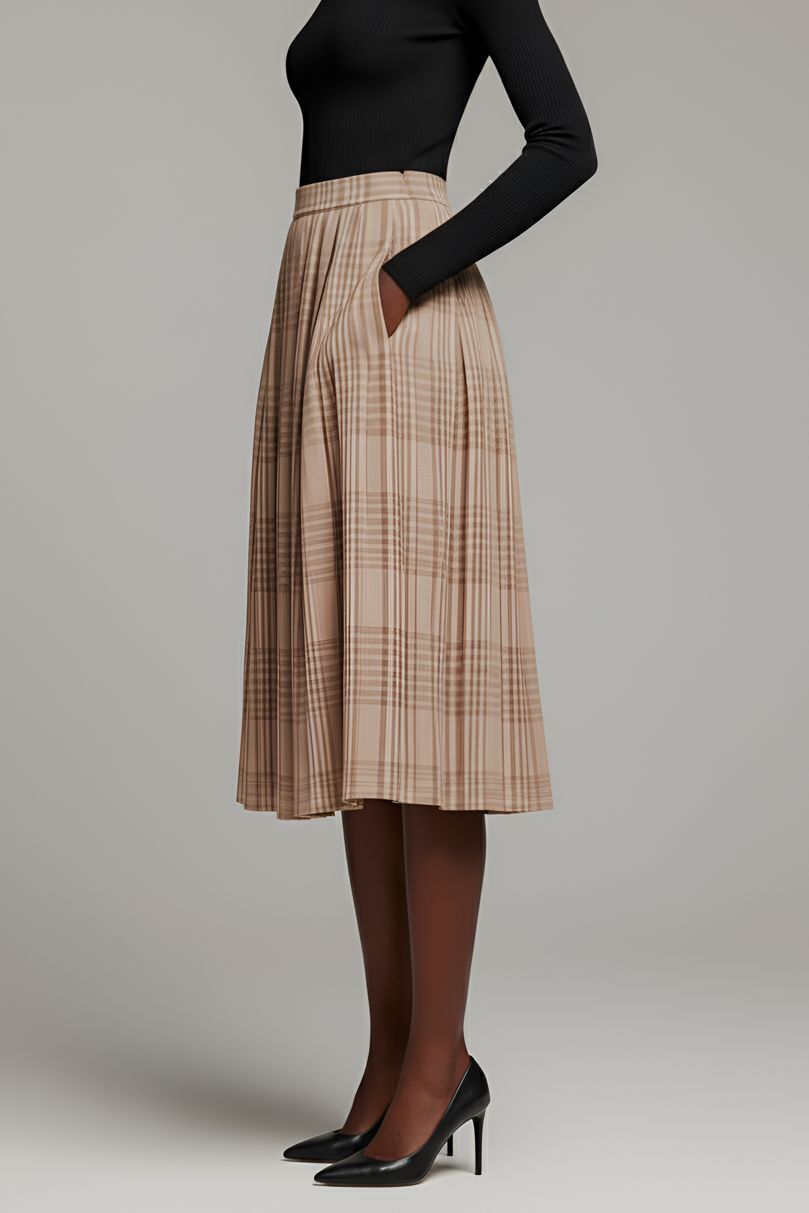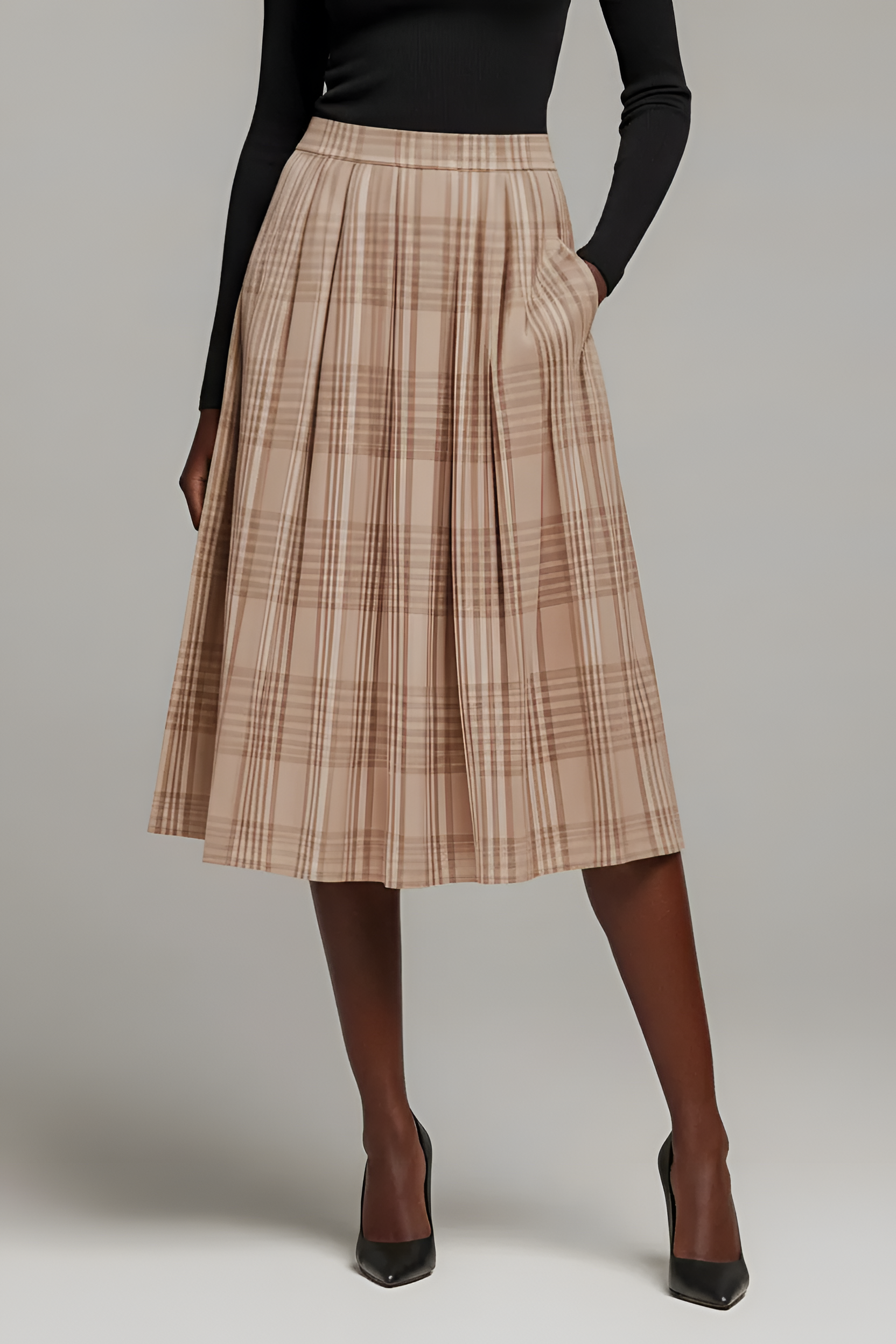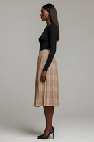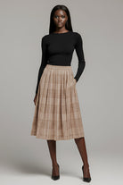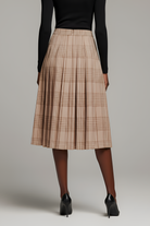This flowing maxi skirt features a timeless plaid pattern and allover pleats for elegant movement with every step. The soft, lightweight fabric drapes beautifully, while the elastic waistband ensures a comfortable and secure fit. Side pockets add a practical touch to the classic silhouette, making it as functional as it is stylish. Perfect for pairing with fitted tops or cozy knits, this skirt brings effortless polish to your wardrobe.