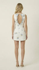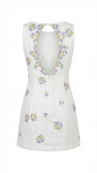 Floral Embroidered Mini Dress with Open Back Detail