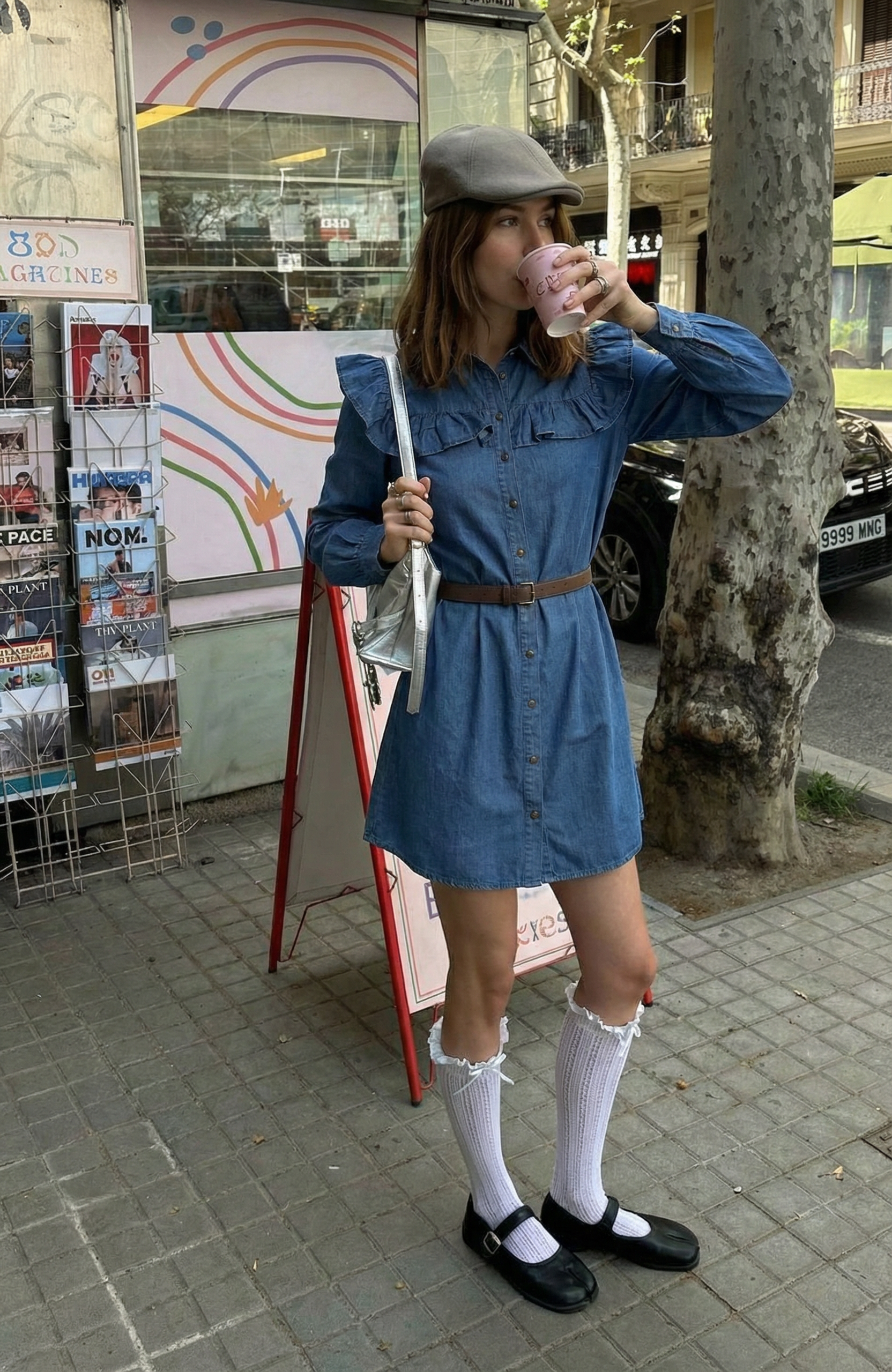 Denim Shirt Dress With Ruffled Collar And Removable Belt (NEW)