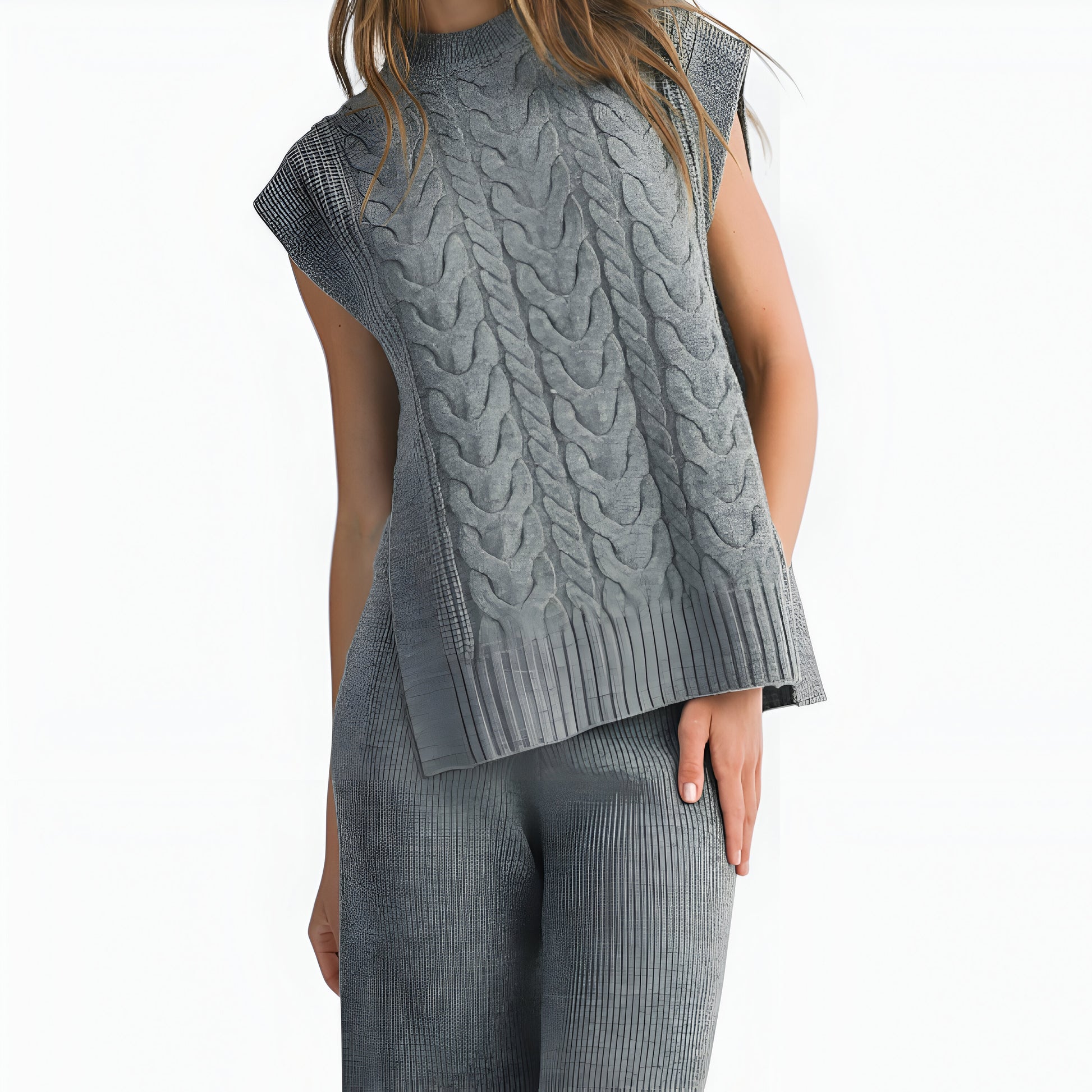 Cable Knit Cap Sleeve Sweater Vest and Wide-Leg Pants Set