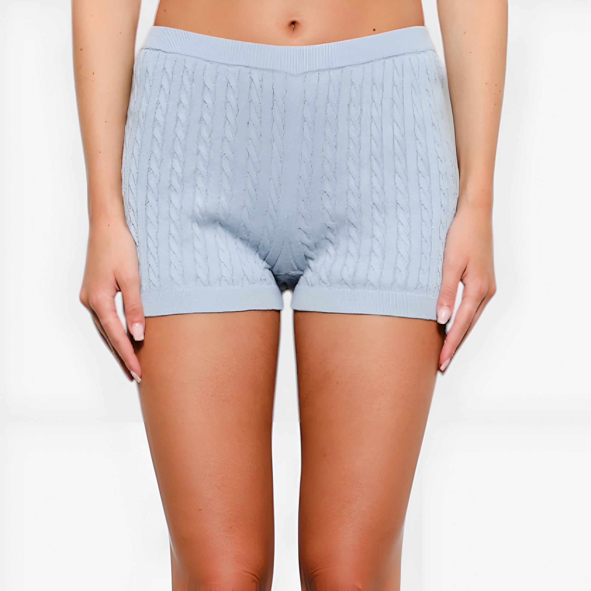 Cable Knit High Waist Sweater Shorts with Ribbed Waistband and Hem
