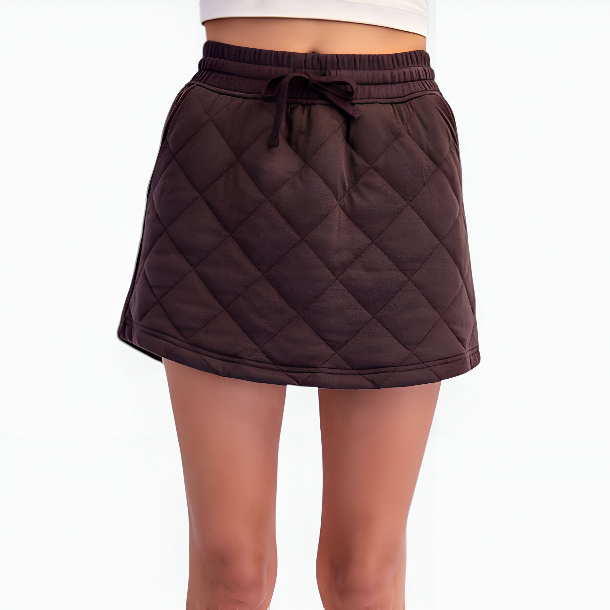 This quilted knit skort brings a modern update to a casual silhouette with its plush diamond-stitched texture and relaxed fit. Featuring a comfortable drawstring waistband and practical side pockets, this piece blends sporty comfort with a touch of cozy style. The soft knit fabric offers a gentle feel against the skin, while the built-in shorts provide coverage and confidence for all-day wear. Pair it with your favorite tee or sweatshirt for a look that’s effortlessly chic and weekend-ready.