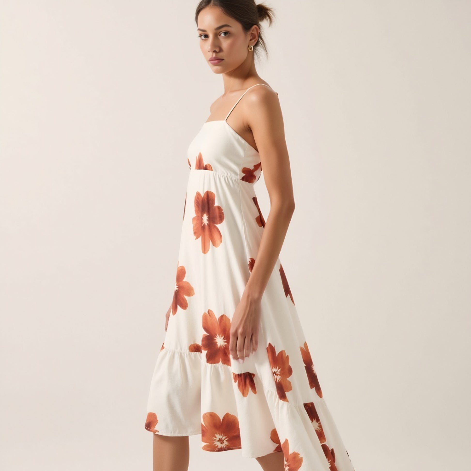 This strappy high-low dress blends carefree charm with flattering details, featuring a smocked back for a perfect fit and a softly tiered silhouette. The bold watercolor floral print adds a dreamy, artistic touch that stands out in any setting. Light and airy, it’s the perfect dress for vacation dinners, sunny garden parties, or a stylish weekend look. The square neckline and thin straps offer a feminine finish that complements the floaty hem. Pair with heels or sandals to complete the effortlessly chic vibe.