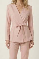 Wrap Blazer with Waist Tie Belt and Structured Tailored Fit